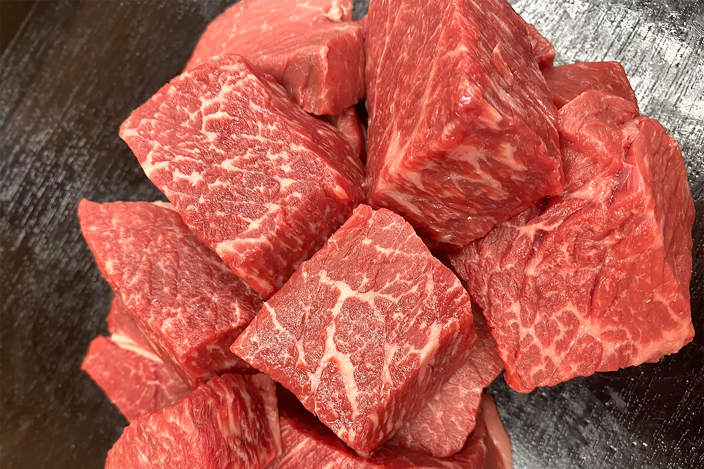 肉王に使用する黒毛和牛は通常ステーキとして販売する上等な部位。今まで一度も挽肉に加工したことはありません。本来の肉の味を感じてほしい。噛みしめるたびに旨みが押し寄せ、黒毛和牛ならではの香りに笑みを隠せない、挽き方から肉の配合まで今まで培った肉の知識と経験を最大限に生かしました。